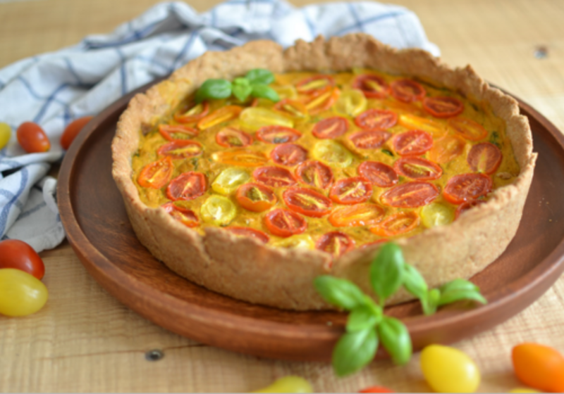 - Die Quiche für 10 Minuten auf 180° C backen, danach auf 160° C runterdrehen und weitere 20 Minuten backen. Vor dem Anschneiden mindestens eine Stunde abkühlen lassen, am besten über Nacht. Mit dem restlichen Basilikum dekorieren und servieren.